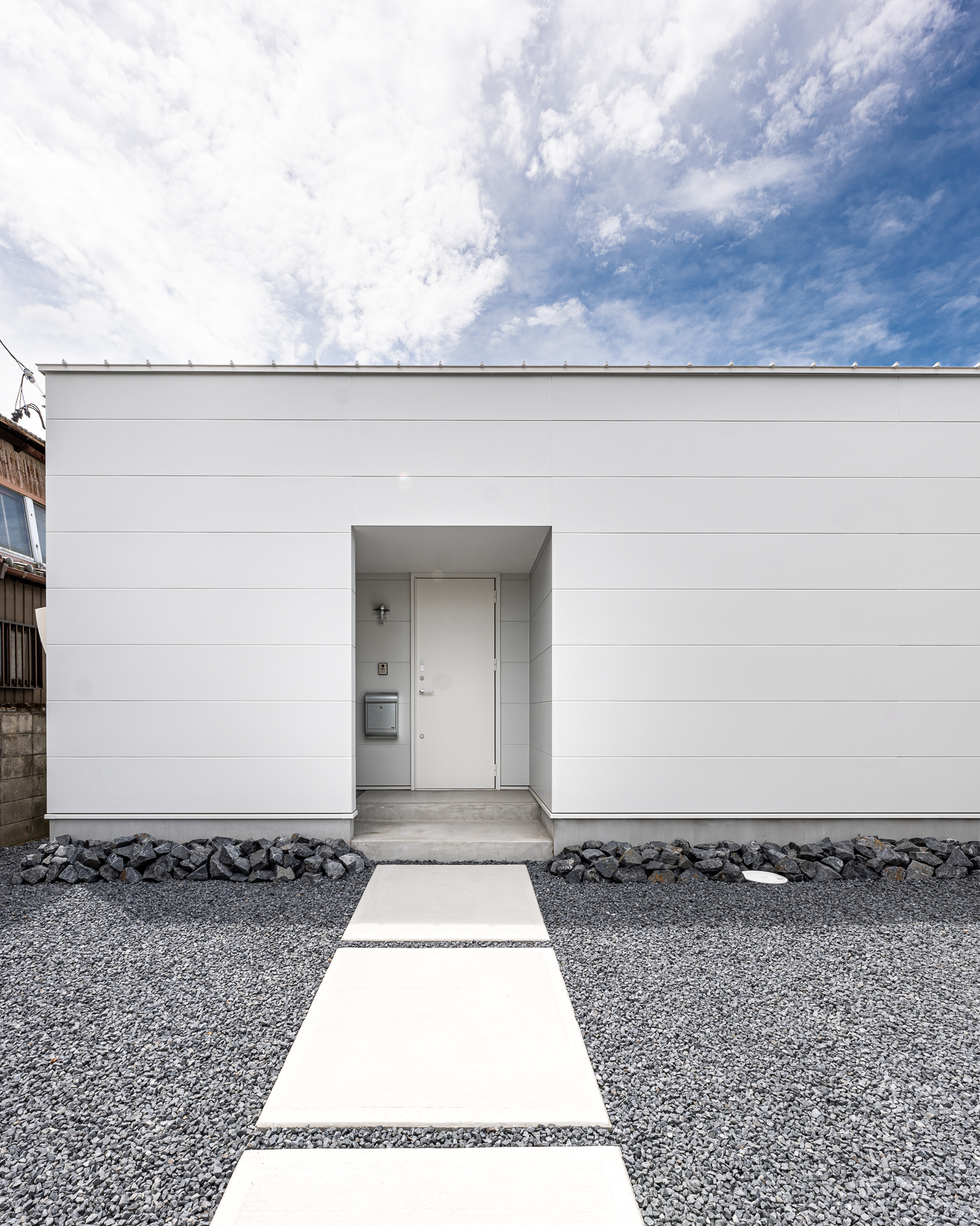 周囲を住宅に囲まれた一宮市の住宅地に建つ平屋。