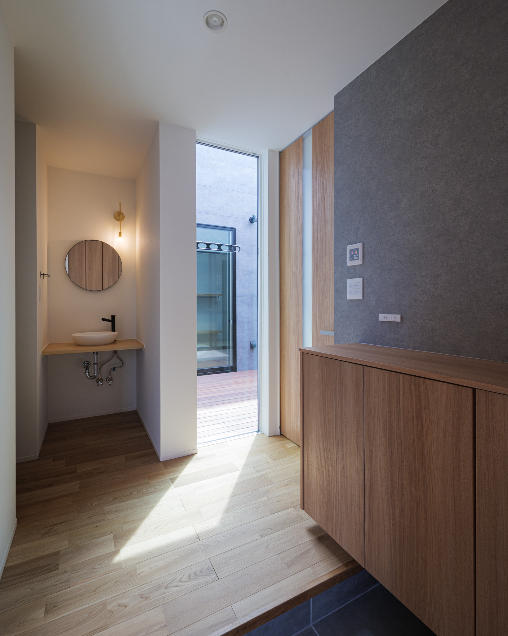 この平屋は、 家の中に“安心して開ける場所”をつくることで、 明るさと心地よさを確保しています。