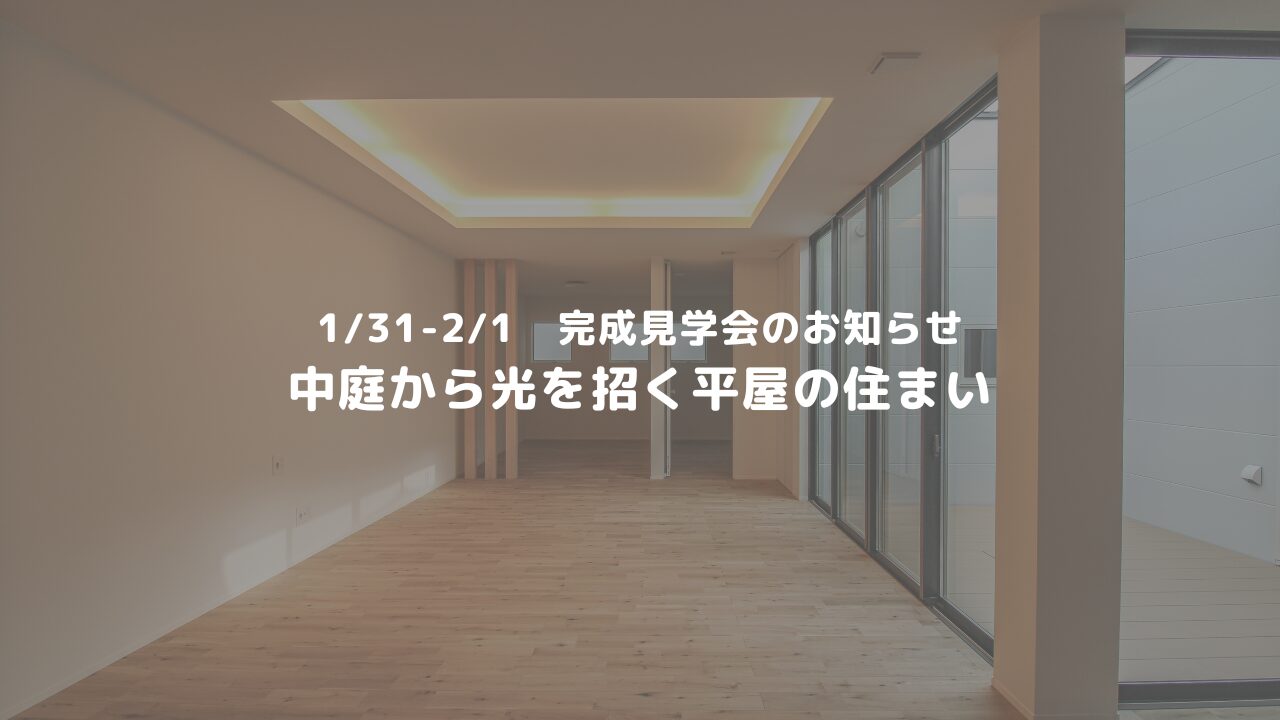 TOPくらしとおかねの学びばブログ中庭から光を招く平屋の住まい|1/31–2/1 完成見学会のお知らせ