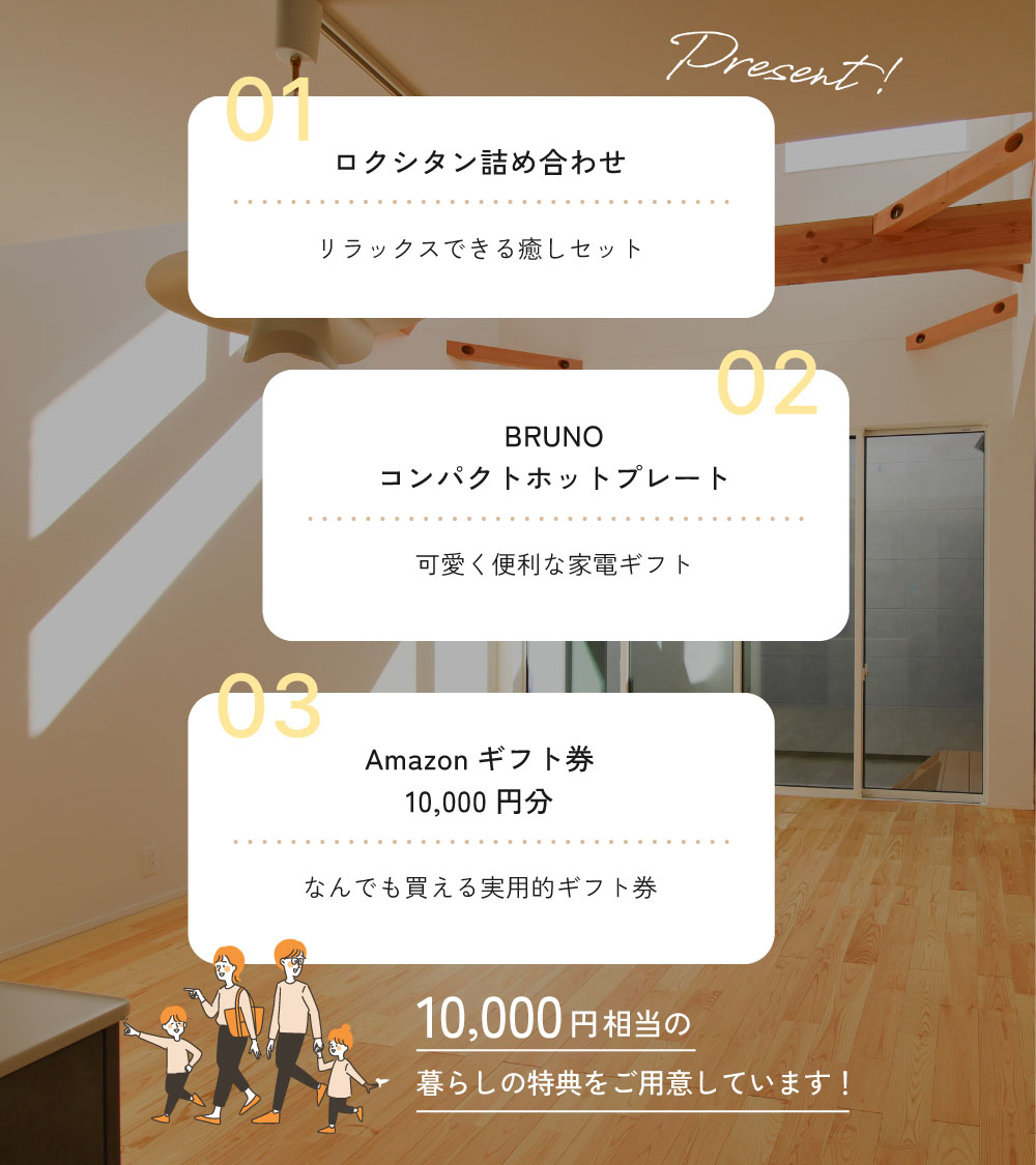 ご来場いただいた方には、ちょっと嬉しい、暮らしの特典をご用意しています。