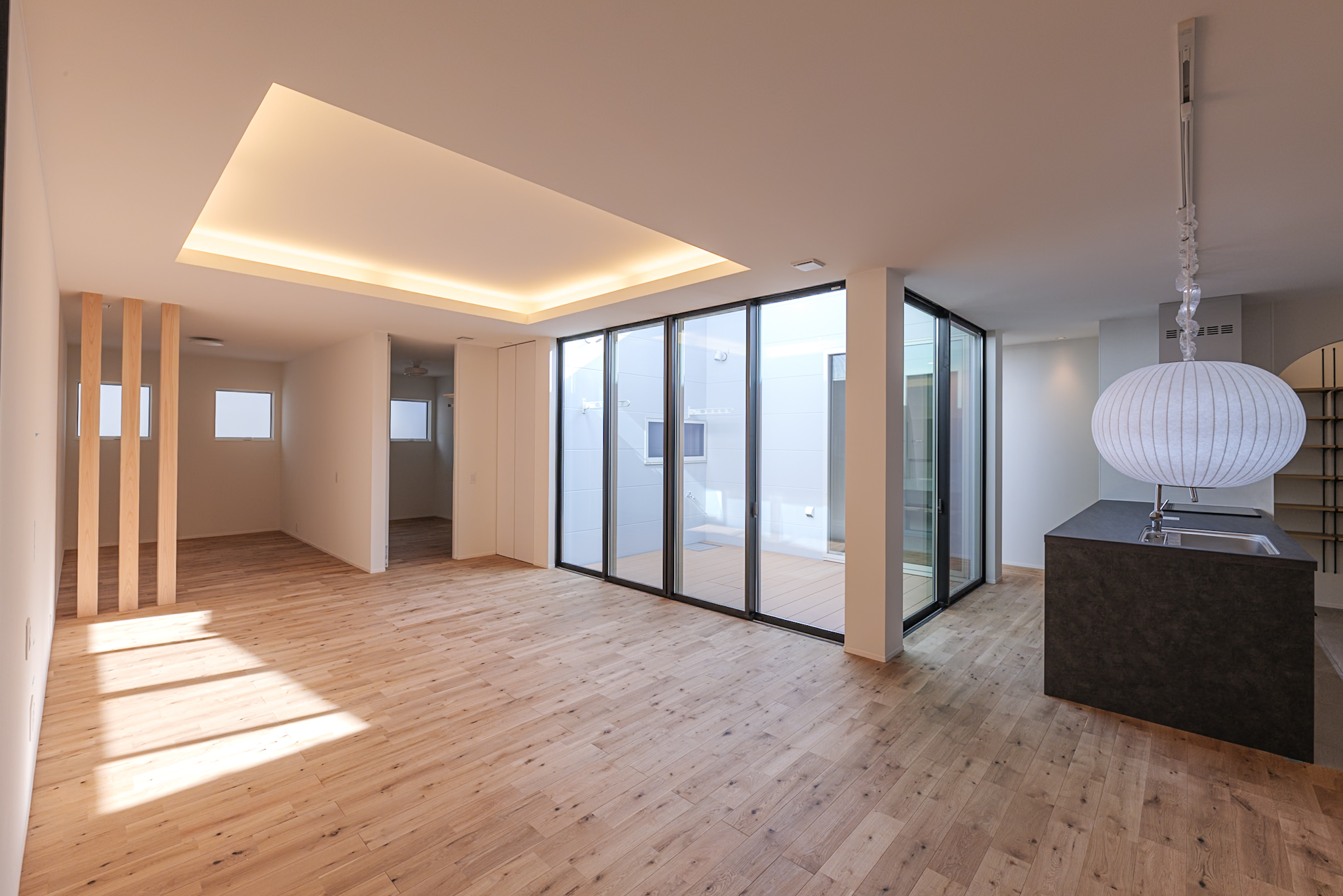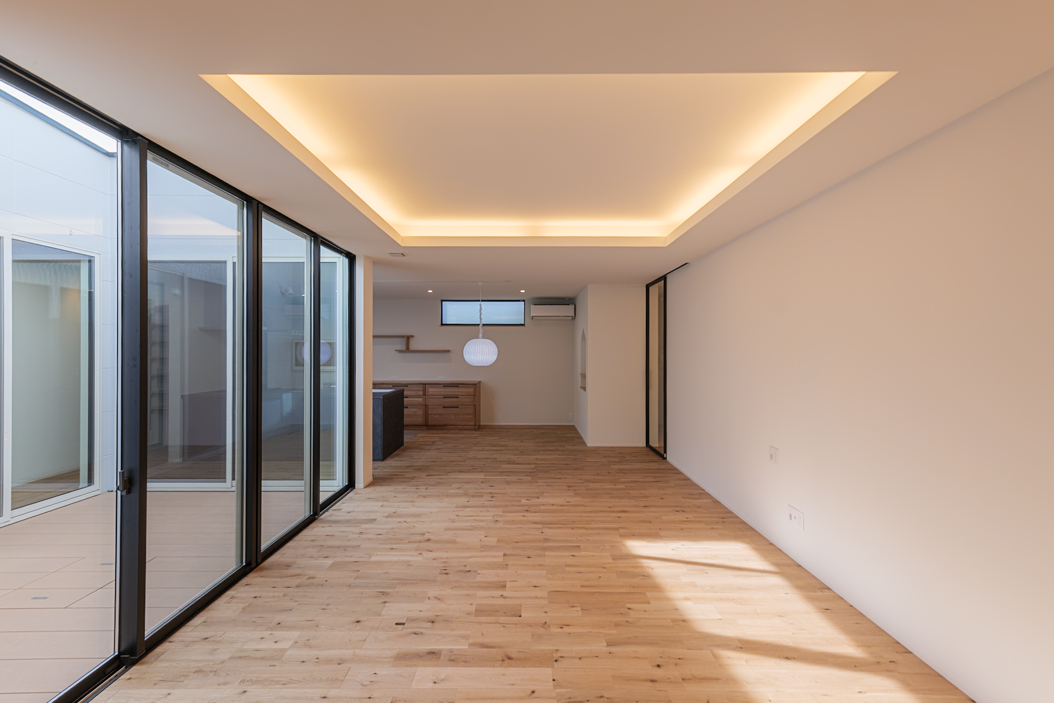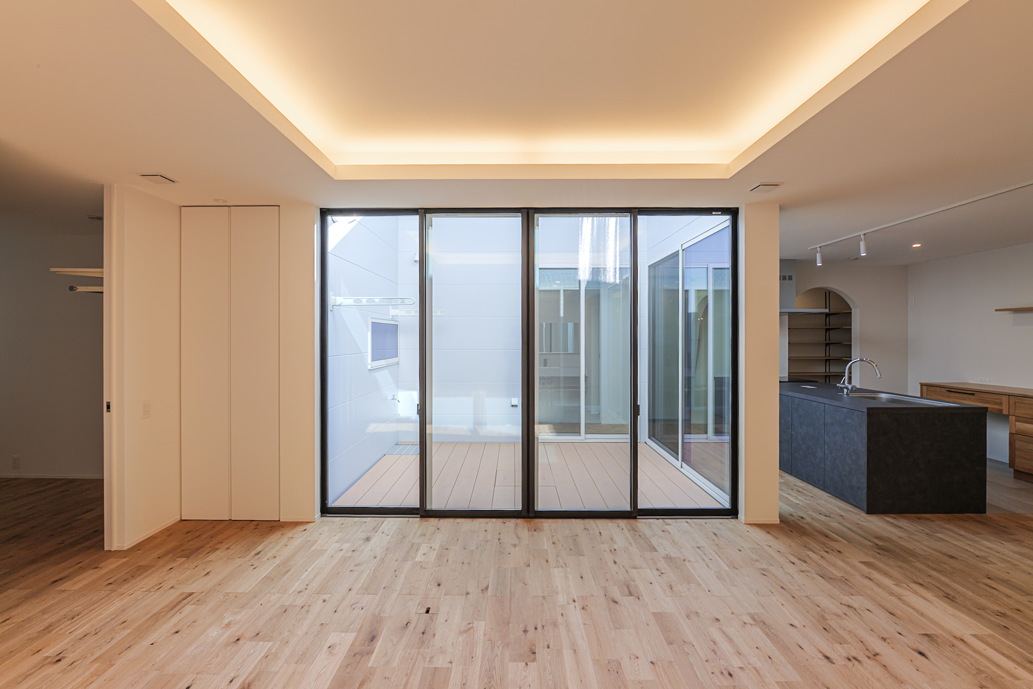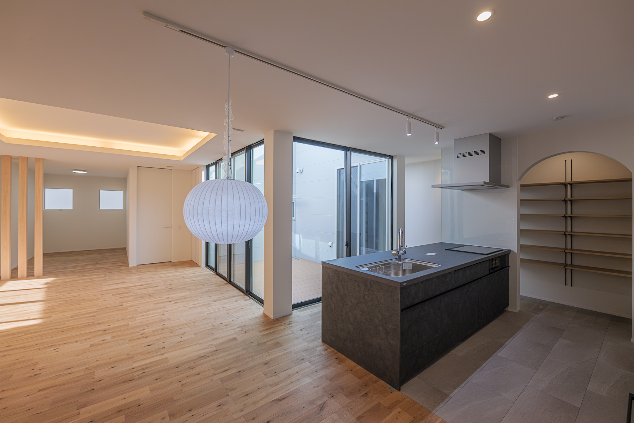 知多郡東浦町|中庭のあるブラック外観の平屋-開放感を叶えるシンプルノートの家|I様邸施工事例